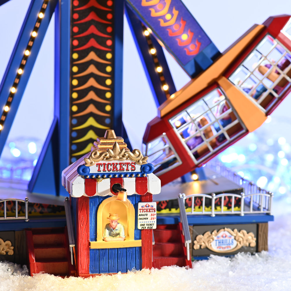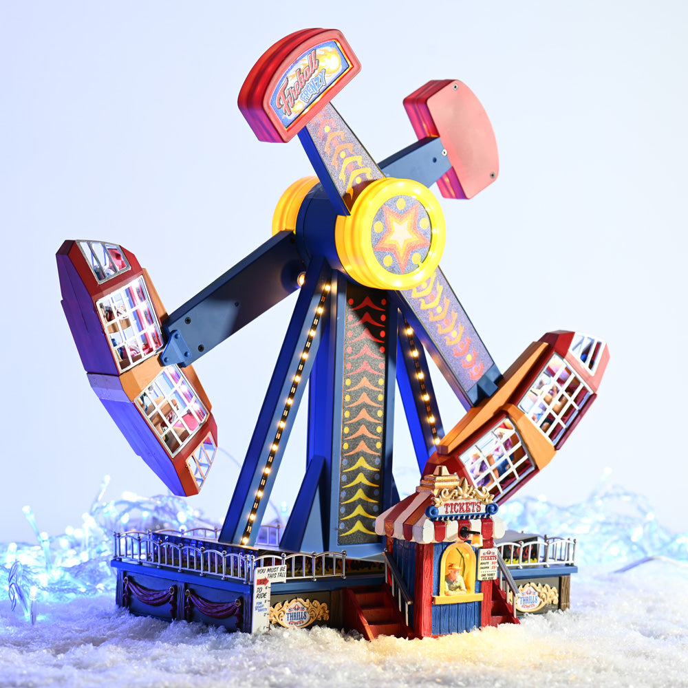 Topsy Turvy brings the exhilarating motion of a carnival ride into your festive display. Made from quality electronic components, it features brightly coloured cars that rotate and tilt as joyful carnival music plays. The volume and power switch lets you easily adjust the atmosphere. Measuring approximately 20.1 x 25.2 x 31?cm, it delivers dynamic presence without overwhelming your layout. Released in 2025 as part of the Carnival Village Sights & Sounds collection, it includes an adaptor for immediate display and motion.