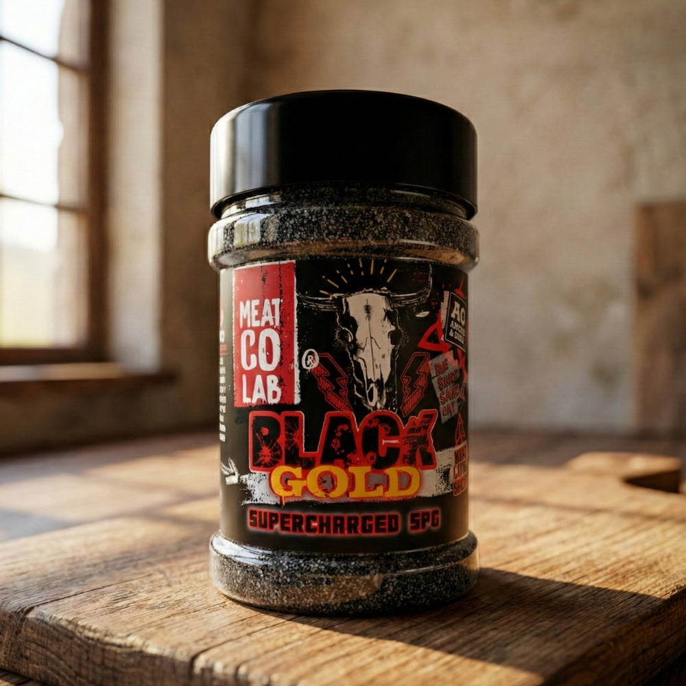 Black Gold is Angus and Oink’s powerhouse SPG blend, created to give beef an instant lift with deep savoury character and a striking dark crust. This mix uses smoked salt, garlic, black pepper and activated charcoal to create a rich bark while adding serious umami depth. Designed as a simple shake on seasoning, it gives steak, brisket and short ribs a flavour boost without overshadowing the meat.