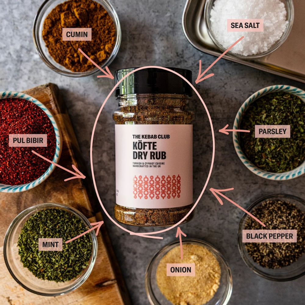 The Kebab Club Kofte Dry Rub brings warm Turkish street food flavour into your kitchen. The blend is built from carefully selected spices and herbs that work together to give lamb and beef a rich rounded taste with gentle heat. Each spoonful adds depth without overpowering the natural character of the meat which makes it well suited to traditional kofte dishes.