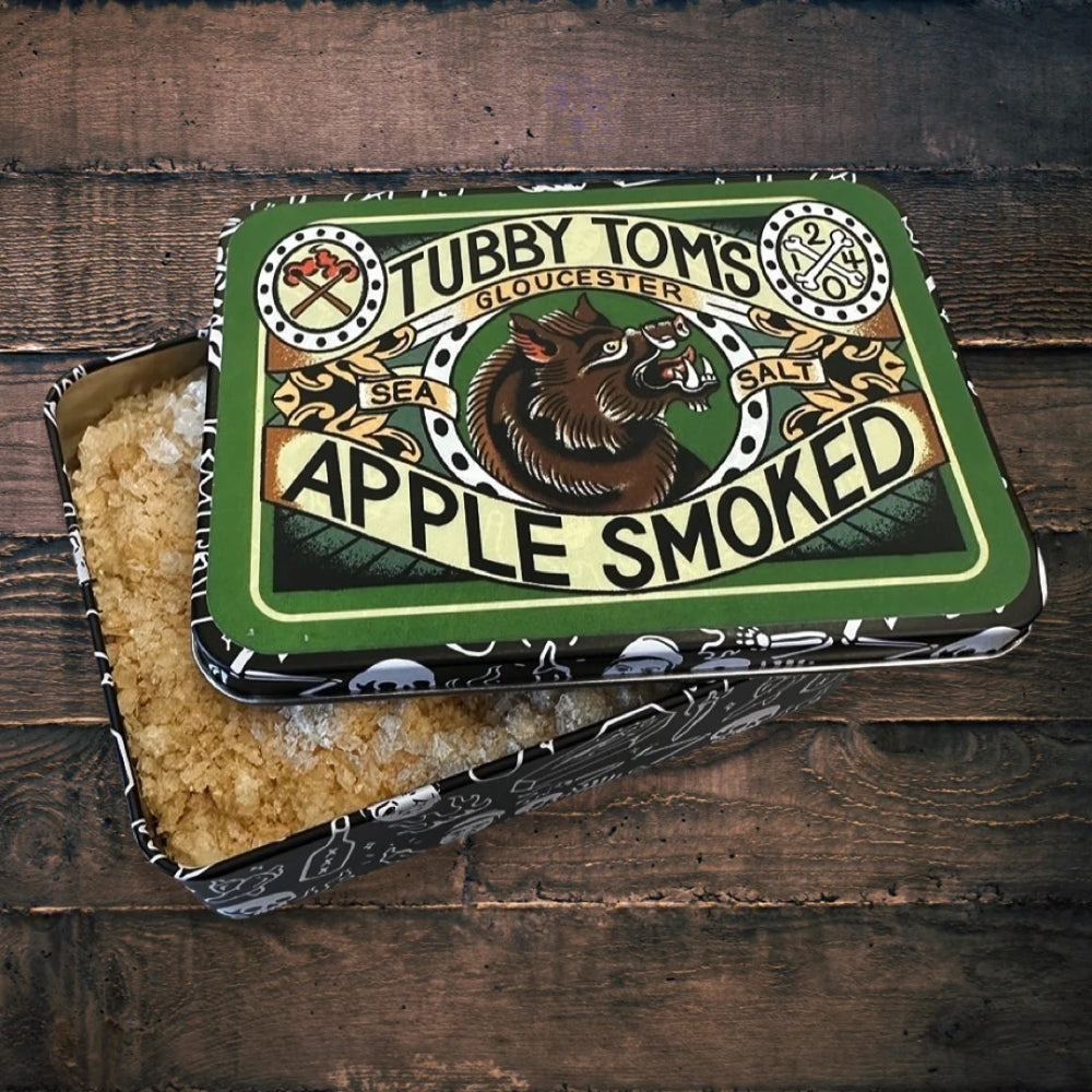 Tubby Tom's Apple Wood Smoked Sea Salt Flakes offer a mild sweet smoke from apple wood which pairs especially well with pork chicken and fish. The fruitwood smoke brings a soft rounded depth that lifts the natural flavour of delicate meats without overpowering them. Each batch is smoked in house and packed into a sturdy reusable tin that looks great on any kitchen shelf.