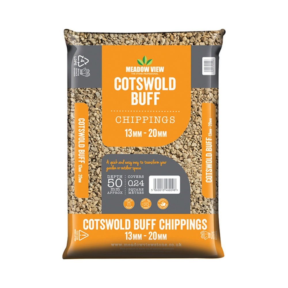 Meadow View Cotswold 13-20mm chippings are a cream and buff coloured limestone aggregate that brings a light, clean finish to garden landscapes. Their bright natural tones help reflect light and instantly lift paths, borders and decorative areas. Supplied in convenient bags, these limestone chippings are suitable for both small garden updates and larger landscaping projects.