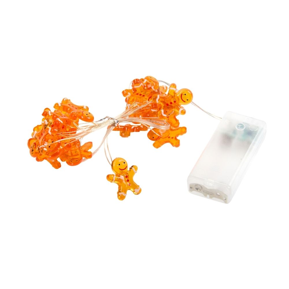 Add a sweet touch of Christmas charm with the Three Kings Gingerbread String Lights. This delightful set of 20 LED lights features cheerful gingerbread men that create a warm, festive glow perfect for kitchens, mantels, or shelves. Ideal for adding a playful twist to your seasonal décor, these battery-operated lights are easy to place anywhere in your home. A fun and cosy choice that brings festive warmth to any room.