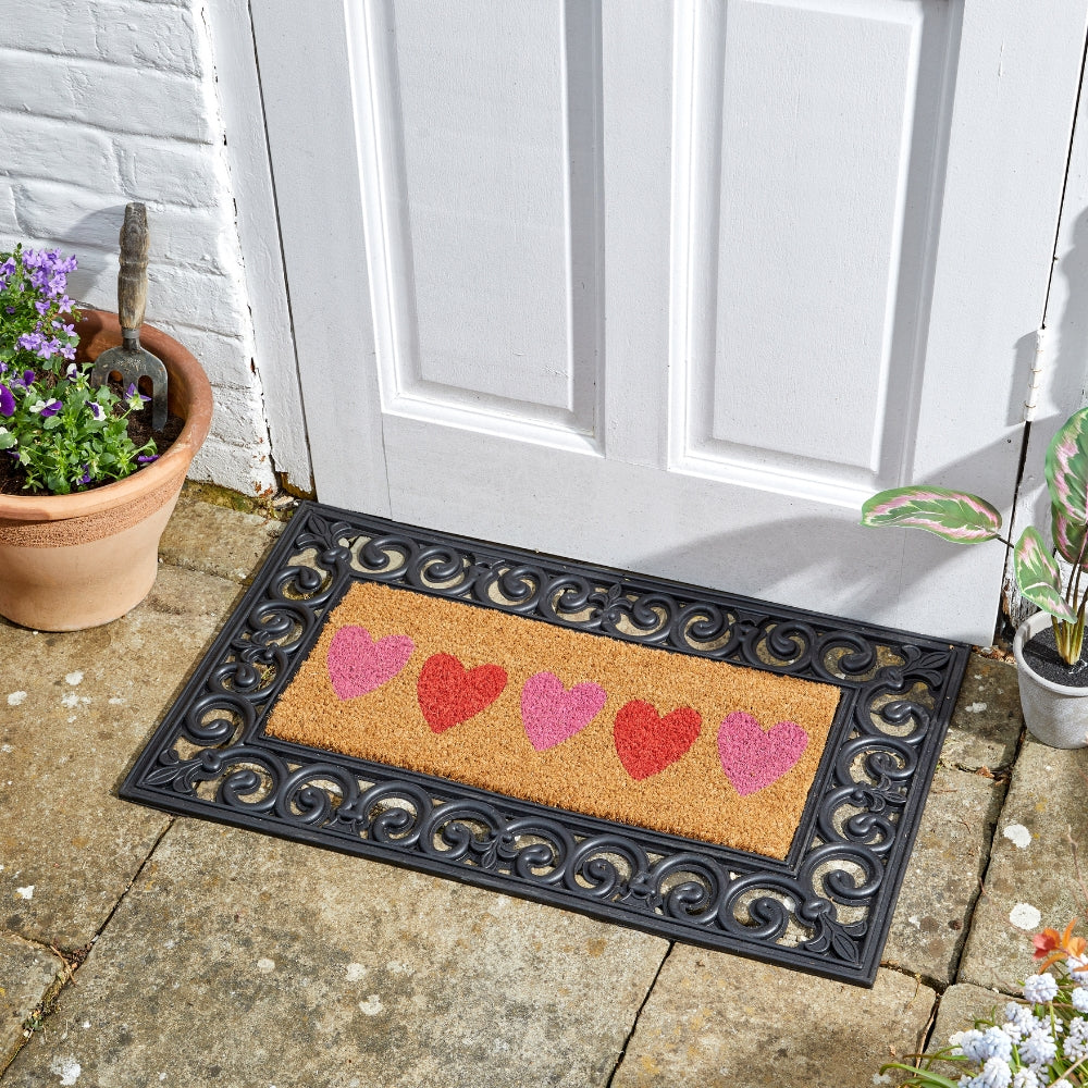The Hearts Decoïr Insert Mat 23 x 53cm is a charming and practical coir insert designed to refresh your doorway with ease. Made from eco-friendly natural coconut fibre, it effectively removes mud and dirt from shoes and boots while adding a warm, welcoming touch to your entrance.