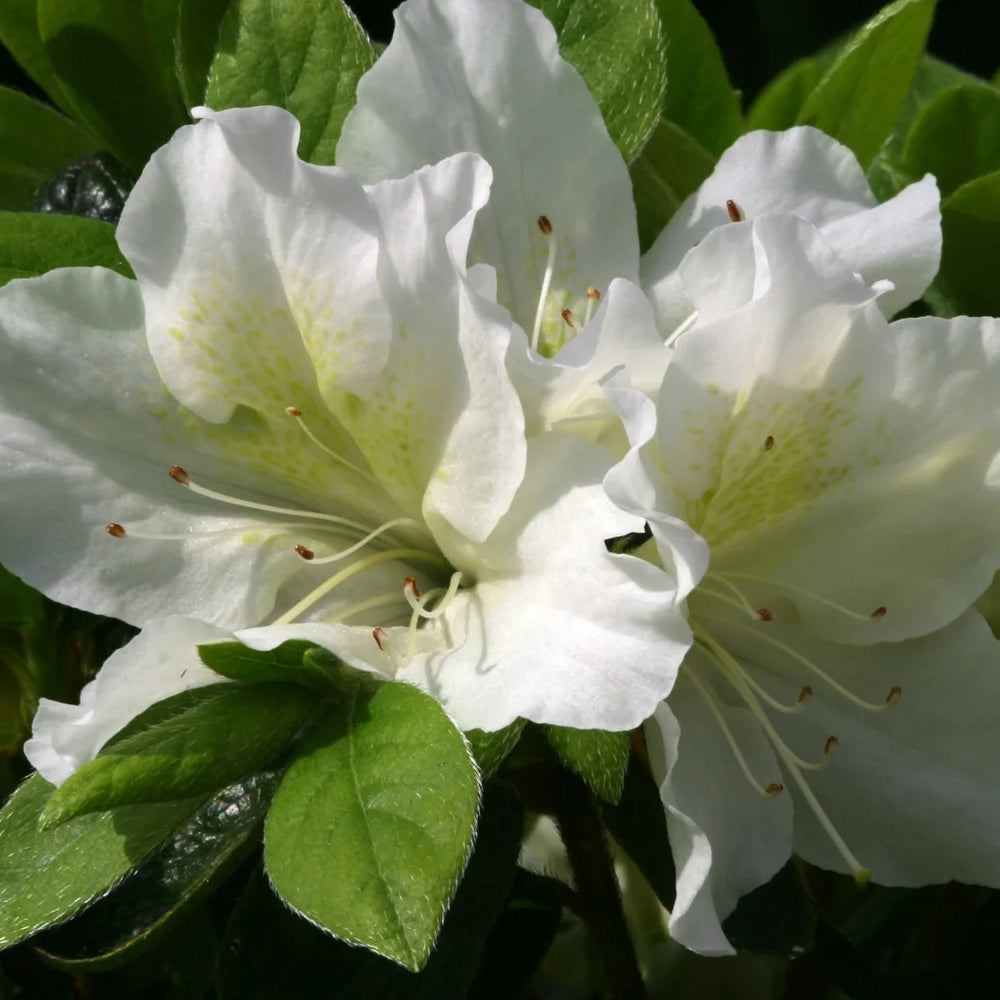 Azalea 'Mary Helen' produces large white flowers late in the season, blooming from late May to late June on a compact evergreen shrub. Growing to around 60 to 90cm, it suits pots, borders and rockeries and brings a clean bright finish to the rhododendron and azalea flowering period. Evergreen azaleas vary in leaf retention over winter but all offer strong spring and early summer colour. Each pot contains a mature single plant for a full established look.