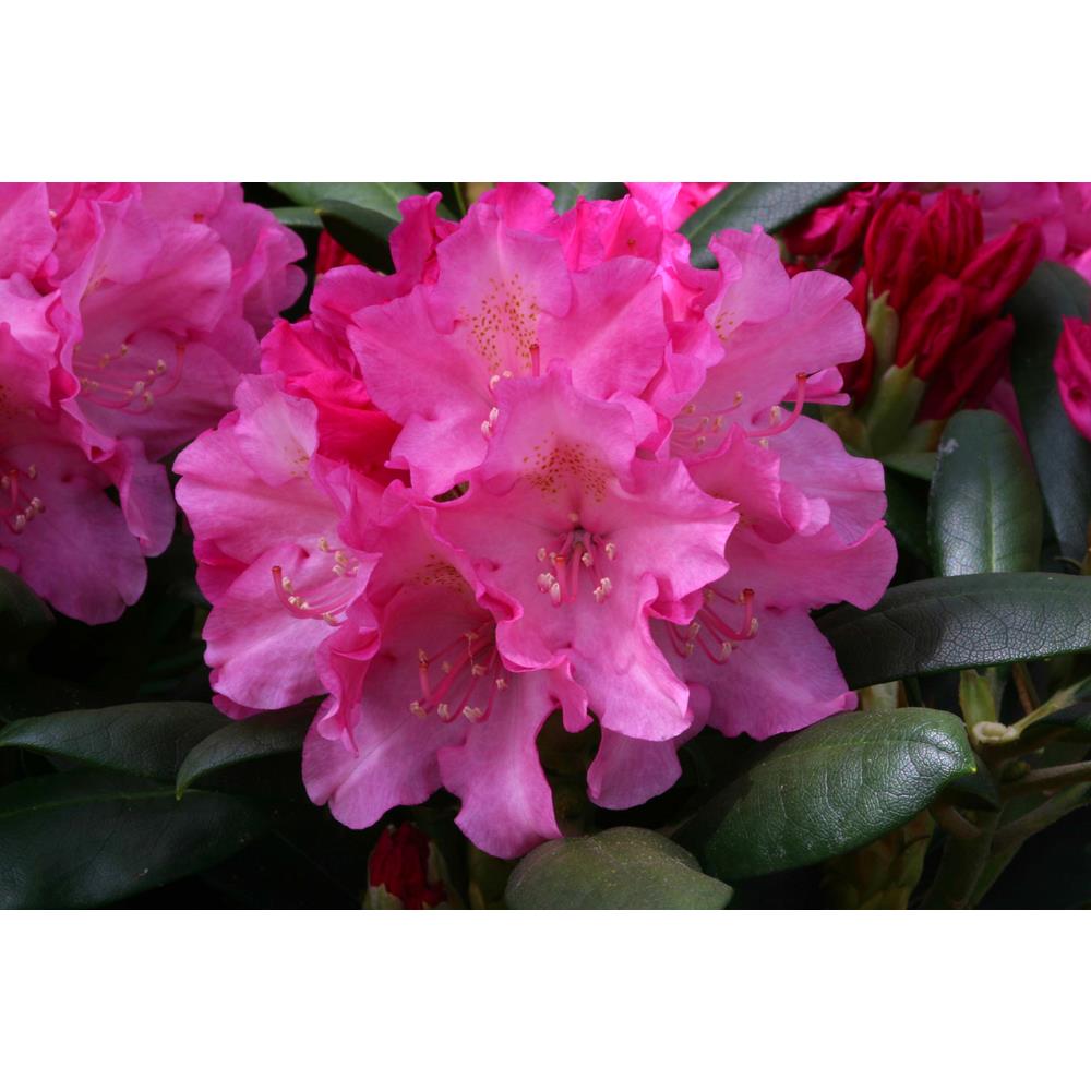Delicious pink flowers which lighten as they mature. Flowers throughout May. A low growing hybrid but with big showy flowers bred from Rhododendron yakushimanum, a glorious species with extremely pretty flowers.