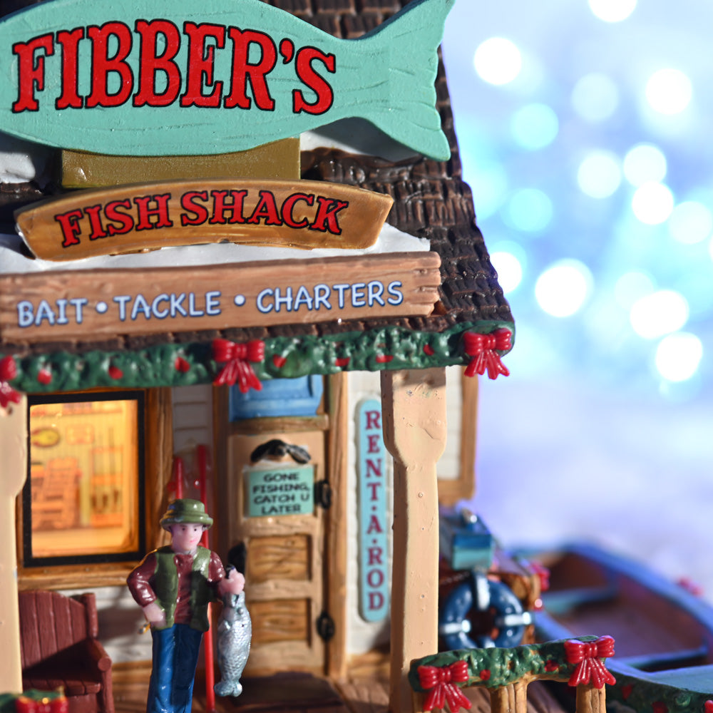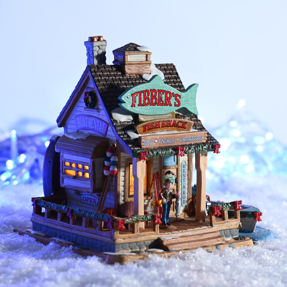 Fibber’s Fish Shack invites you into a cosy lakeside retreat in Vail Village. Crafted from porcelain, this lighted building features a welcoming cabin scene complete with boats, rods, picturesque garlands and a warming wood stove—perfect for anglers and adventurers alike. Soft illumination comes from an included LED Moonlander bulb controlled via a simple on/off switch. Measuring approximately?17 x 18.5 x 15.4?cm, it fits neatly into any village layout. The adaptor is included for immediate display readiness. Released in 2025 as part of the Vail Village collection, it brings storybook charm and novel detail to every festive display.