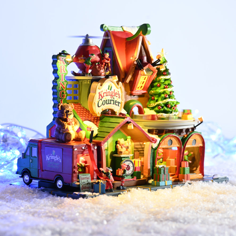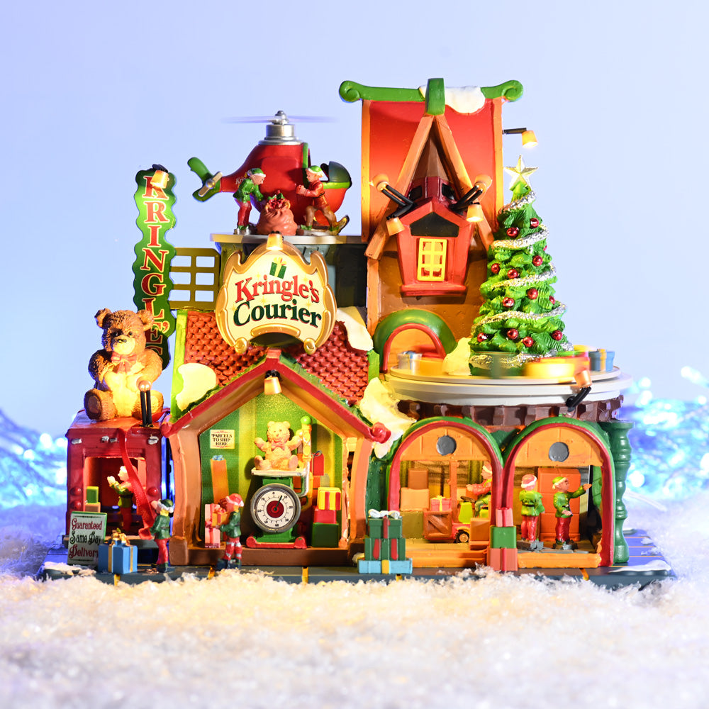 Kringle’s Courier captures the bustle and joy of a festive shipping hub in Santa’s Wonderland. Crafted from resin and decorated in shimmering lights, this animated Sights & Sounds piece portrays couriers whisking away packages amid holiday cheer. It brings life to your display with music, motion and glowing LED lighting—all easily controlled via a power and volume switch. With dimensions of approximately 22.3 x 28 x 15?cm, it is substantial enough to become a display focal point without overcrowding surrounding elements. Released in 2025, it includes an adaptor for effortless plug?and?play setup.