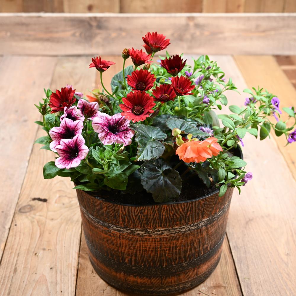 • To get the best out of your planted container it should be kept well watered according to season, and feed. Removing the dead flowers will as always help to promote the growth of more flowers and prolong the flowering period of your display.