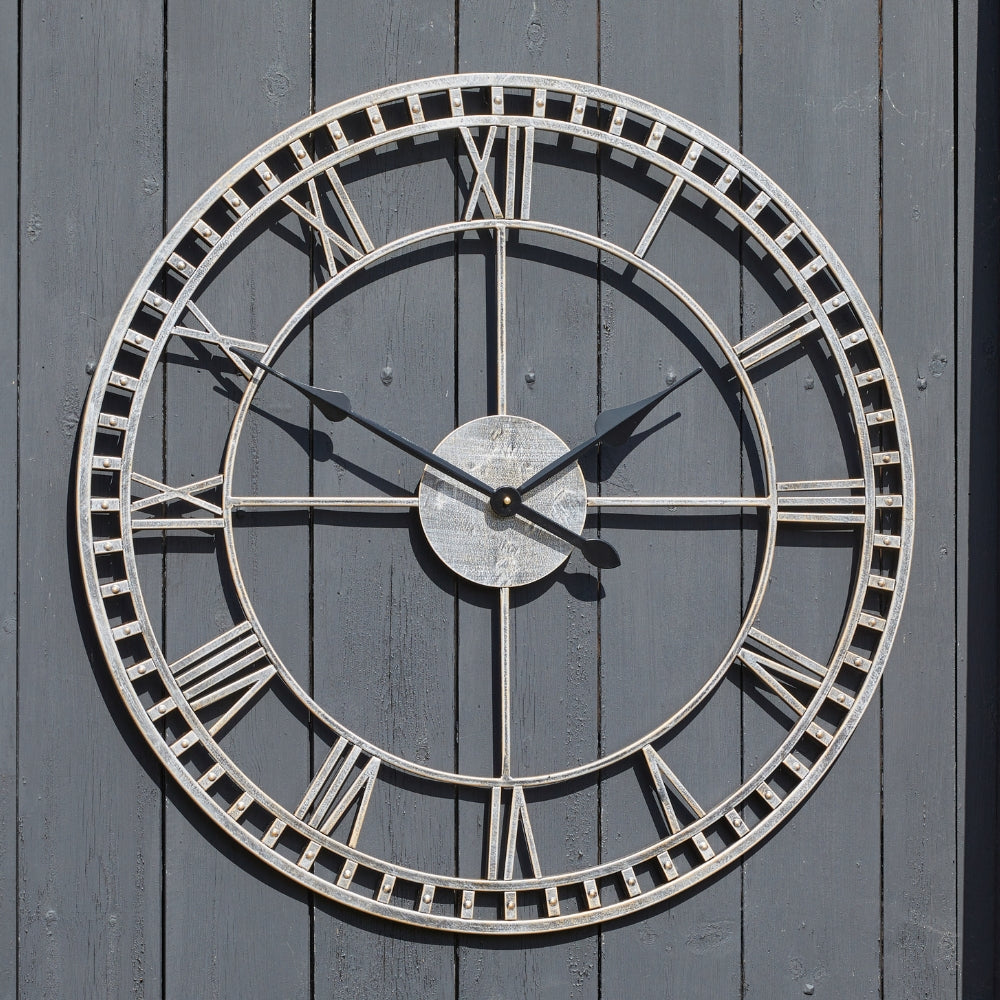 This extra large Buxton wall clock offers a striking contemporary skeleton design that suits both indoor and outdoor settings. Crafted from durable metal with a weather resistant finish it delivers strong visual impact on patios, garden walls, outdoor rooms and spacious interiors. The open frame design keeps the look light while still providing clear visibility from a distance. Its quartz mechanism ensures accurate timekeeping throughout the year.