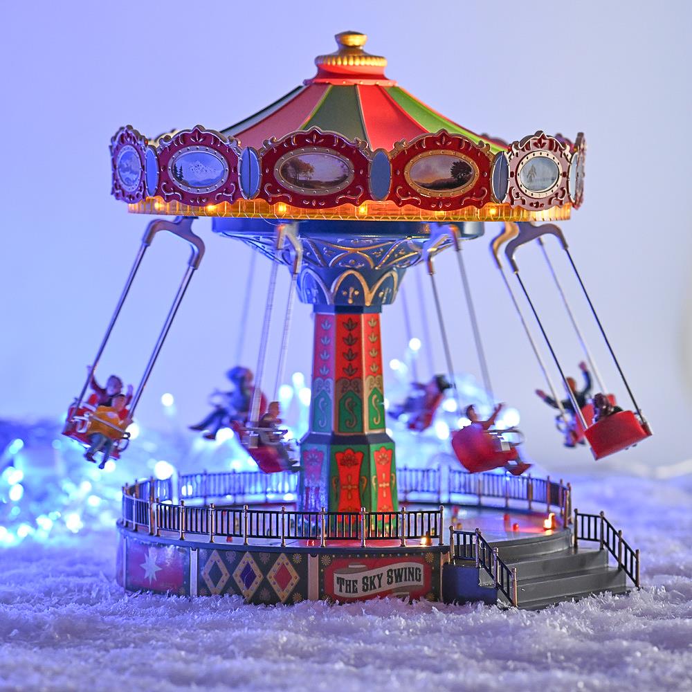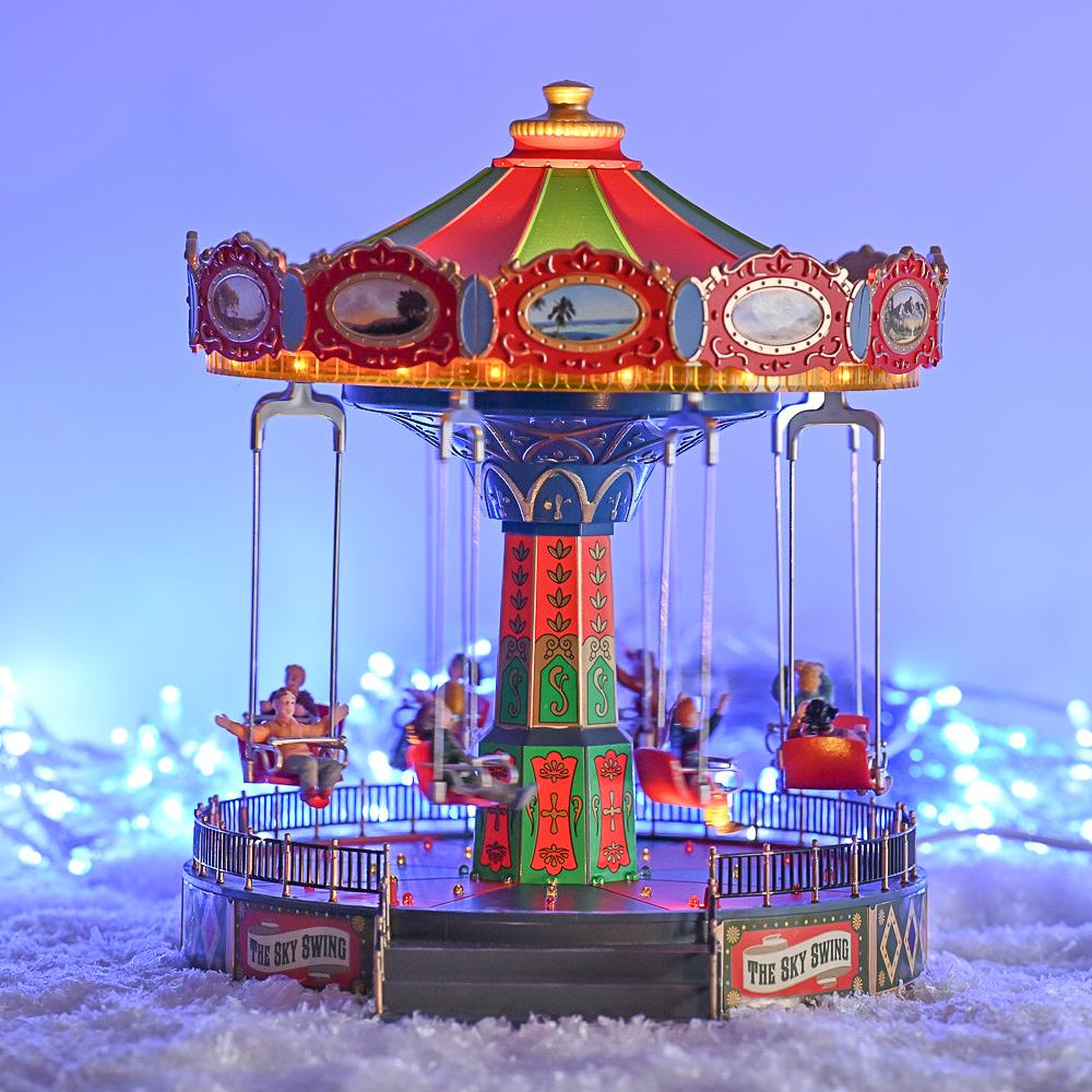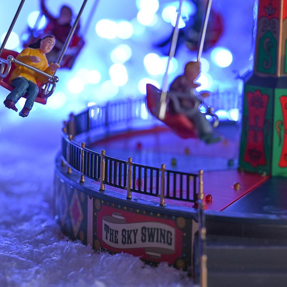 The Sky swing is fun for all the family with riders being spun around in their chairs around a colourful musical centre