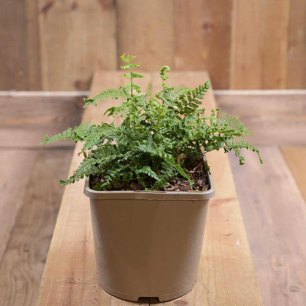 Dryopteris cristata, also known as the crested wood fern, is a semi-evergreen fern that is native to North America, Europe, Russia, and northern Asia. It is a hardy plant that can tolerate a wide range of conditions, but it prefers moist, shady areas. The fronds are twice pinnate, with each leaflet being divided into several smaller leaflets. The fertile fronds are erect and have widely spaced leaflets. They produce brown, kidney-shaped spores that line the undersides of the leaves in irregular rows.