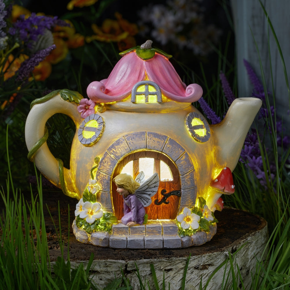 The Elvendon Fairy Flowerpot Lit Solar House brings playful charm to fairy gardens pots and indoor displays. Crafted with a detailed hand painted finish this fairy home lights up at dusk using energy collected by its built in solar panel. With a choice of soft white or colour changing LEDs you can create either a gentle glow or a vibrant magical effect. It is ideal for adding character to flowerbeds patios and children's garden corners.