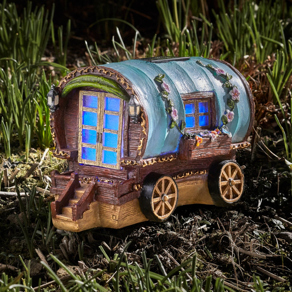 Suitable for both indoor and outdoor use the Gypsy Rose Caravan requires no wiring and is simple to position. Place it in a sunny spot during the day and enjoy its enchanting illumination each evening. Its sturdy construction and vibrant design make it perfect for collectors and fairy garden enthusiasts looking to create a whimsical scene.