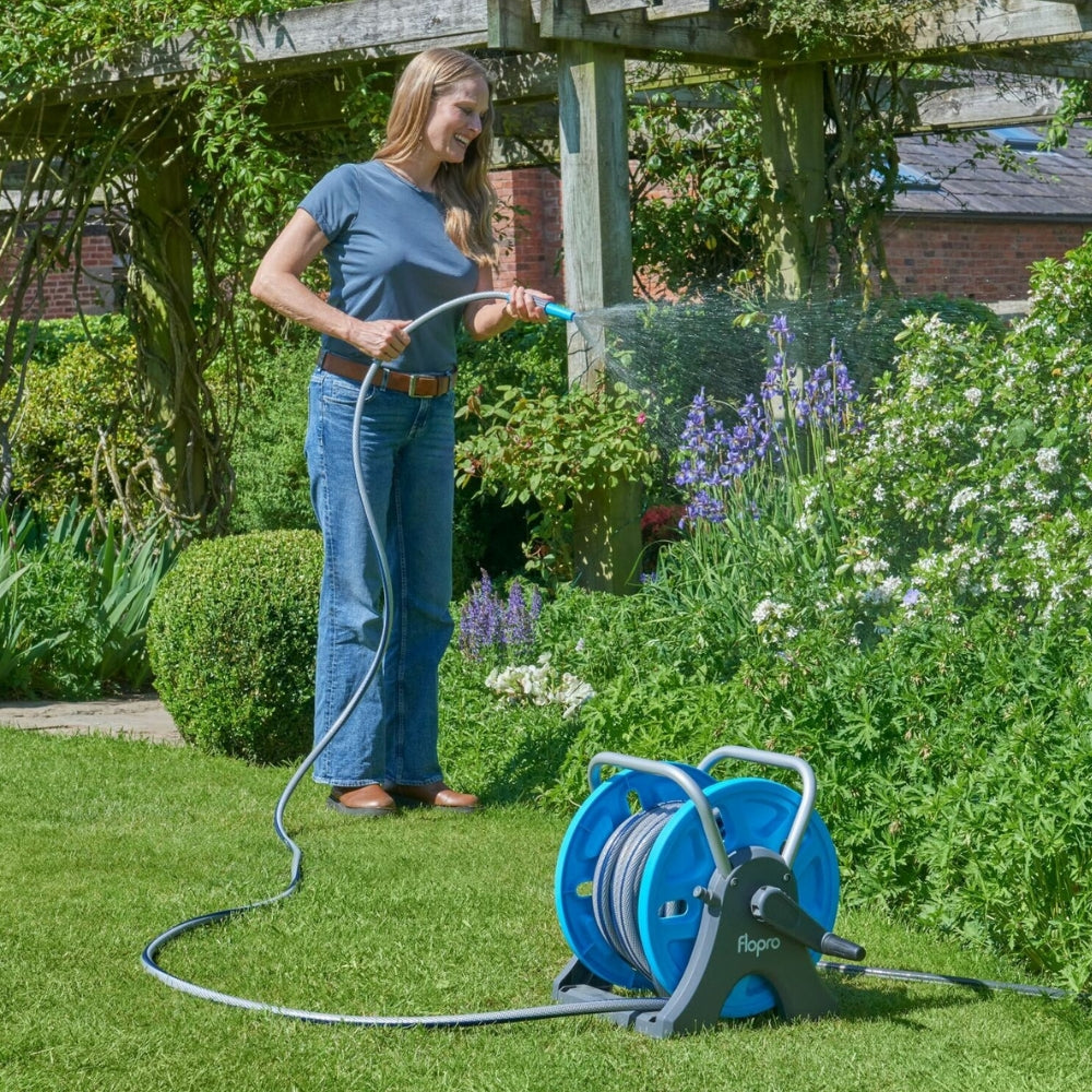 The Flopro Everyday Complete Hose System 20m is an all in one watering solution designed to make garden watering simple and organised. Featuring a stable hose reel, it allows smooth unwinding and rewinding of the hose, helping reduce tangles and making watering more efficient. The system can be used free standing or mounted to a wall, giving flexibility to suit different garden layouts.