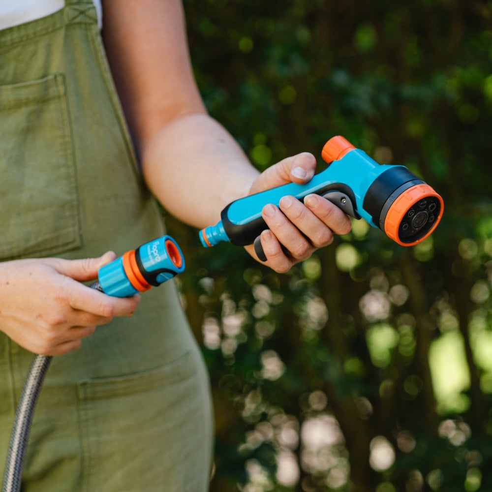 The Flopro Supergrip Hose Connector Starter Kit provides everything needed to get started with garden watering using a secure, leak free connection. Designed with connectors that are 20% longer than standard fittings, this kit delivers a firmer grip on the hose while helping prevent leaks during use. The stainless steel internal springs ensure smooth and quick connections to taps, spray guns and sprinklers.