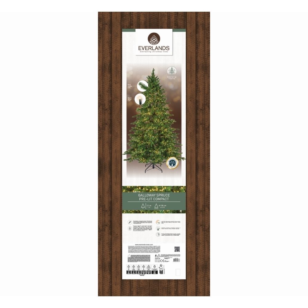 Light up your season instantly with the Everlands Galloway Spruce Pre-Lit Christmas Tree 7 ft. This majestic spruce features 4,000 warm white LED lights, evenly spaced at 3.3 cm intervals, and 8 lighting modes controlled by an 8-hour timerno stringing required. With 2 140 real-needle moulded tips across 65 hinged branches, it offers a lush, full silhouette that stands out in any room. The tree is built with a robust steel frame, includes a foot switch and 5 m lead cable, and comes in three hinged sections for fast set up. Benefit from peace of mind too: the tree arrives with a standard 2-year warranty extendable to 12 years when registered.