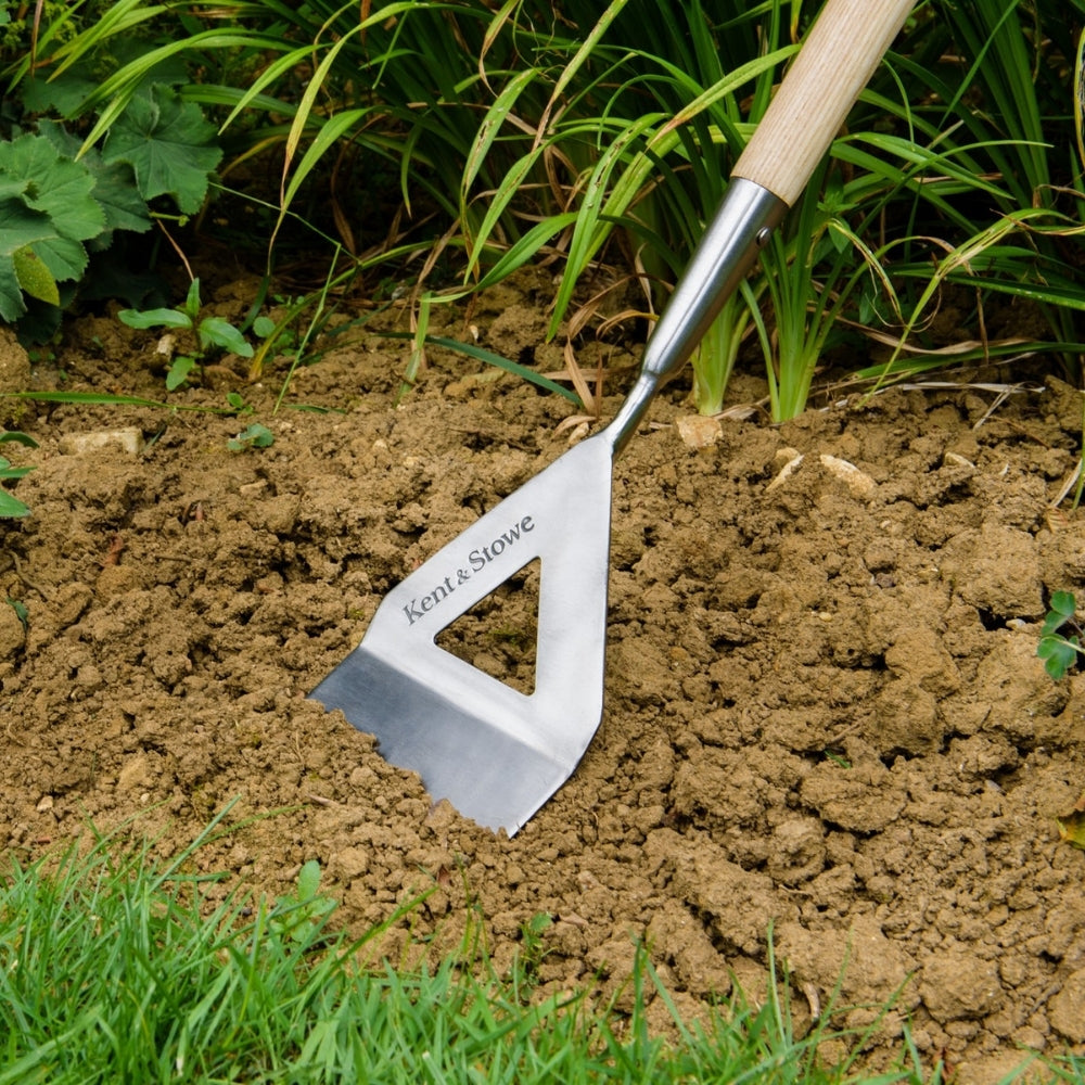 The Kent & Stowe Stainless Steel Long Handled Dutch Hoe is a high-quality, precision weeding tool designed to effortlessly slice through weeds just below the soil surface. Its sharp blade cuts weeds at the roots, preventing regrowth while minimising soil disturbance. This hoe is perfect for weeding in rows, between plants, and in tight spaces, offering exceptional control for precision gardening.