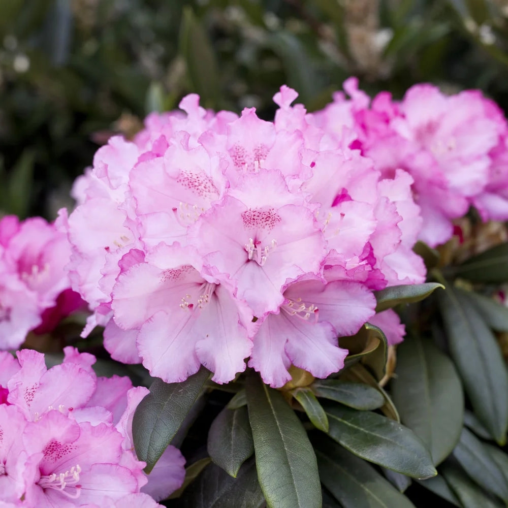 Rhododendron 'Schneewittchen' is a compact evergreen shrub that produces soft pink flowers in May, bringing gentle colour to small gardens and shaded borders. Reaching around 1m high and wide, it forms a neat rounded shape and is known for being very reliable and free flowering. Its tidy size makes it an excellent choice for borders, rockeries and patio containers.
