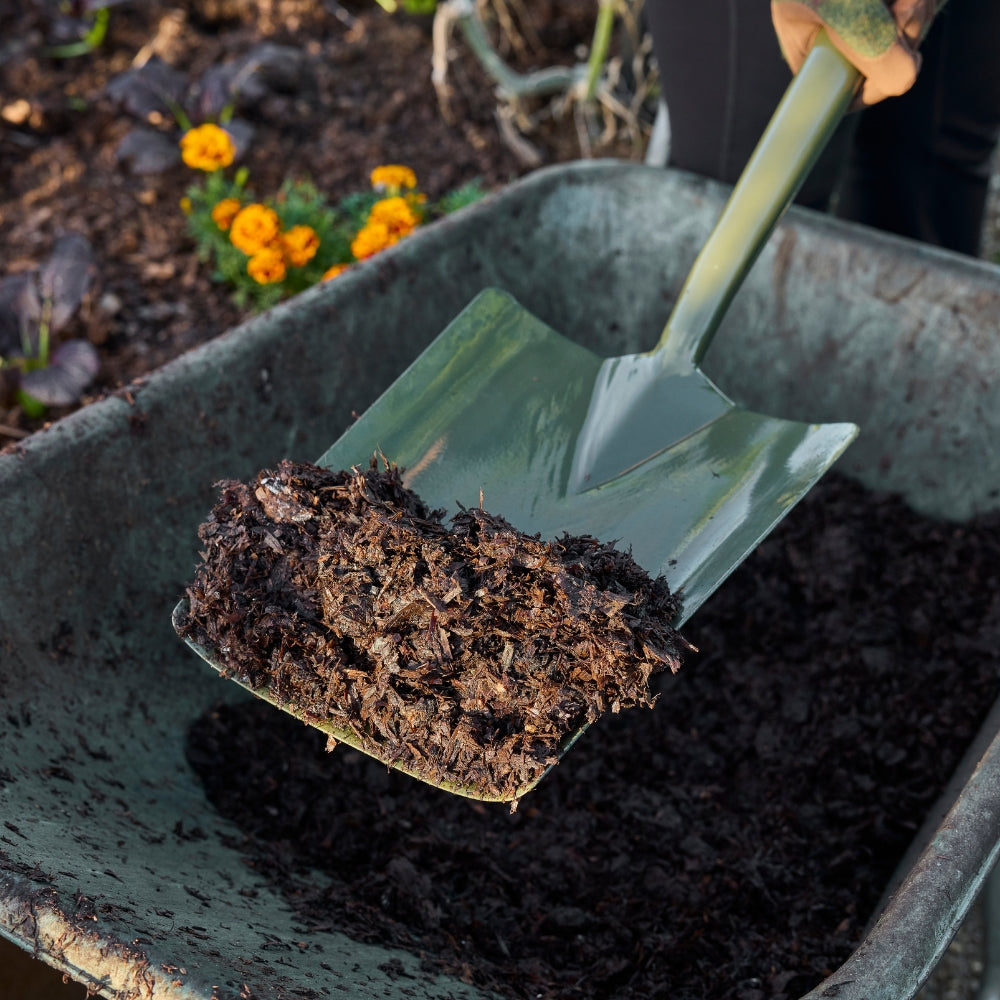 The RHS Stainless BoronGreen Square Shovel combines the strength of boron steel with sustainable materials to create a professional-grade garden tool. Its deep, powder-coated steel blade is ideal for lifting, moving and spreading loose materials such as soil, compost and mulch, while the 80% recycled steel construction ensures durability and eco-friendly performance. The tough green coating protects against rust, keeping the shovel looking good for years.