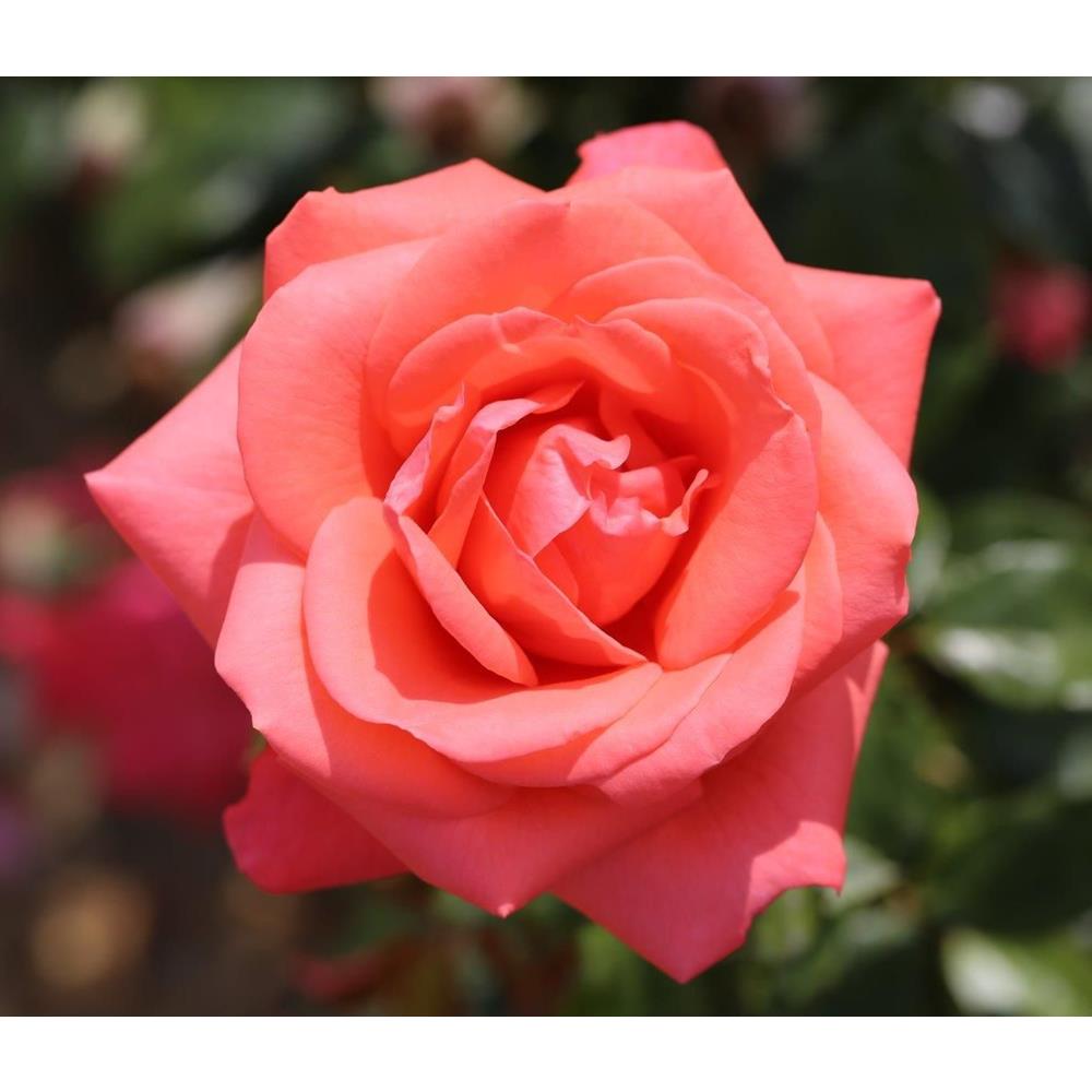 Rose Showtime Coral Pink is a hybrid tea rose that was bred by Meilland in France in 2003. It has large, coral pink blooms with a strong fragrance. The flowers are produced in clusters and have a long vase life. The foliage is dark green and glossy.