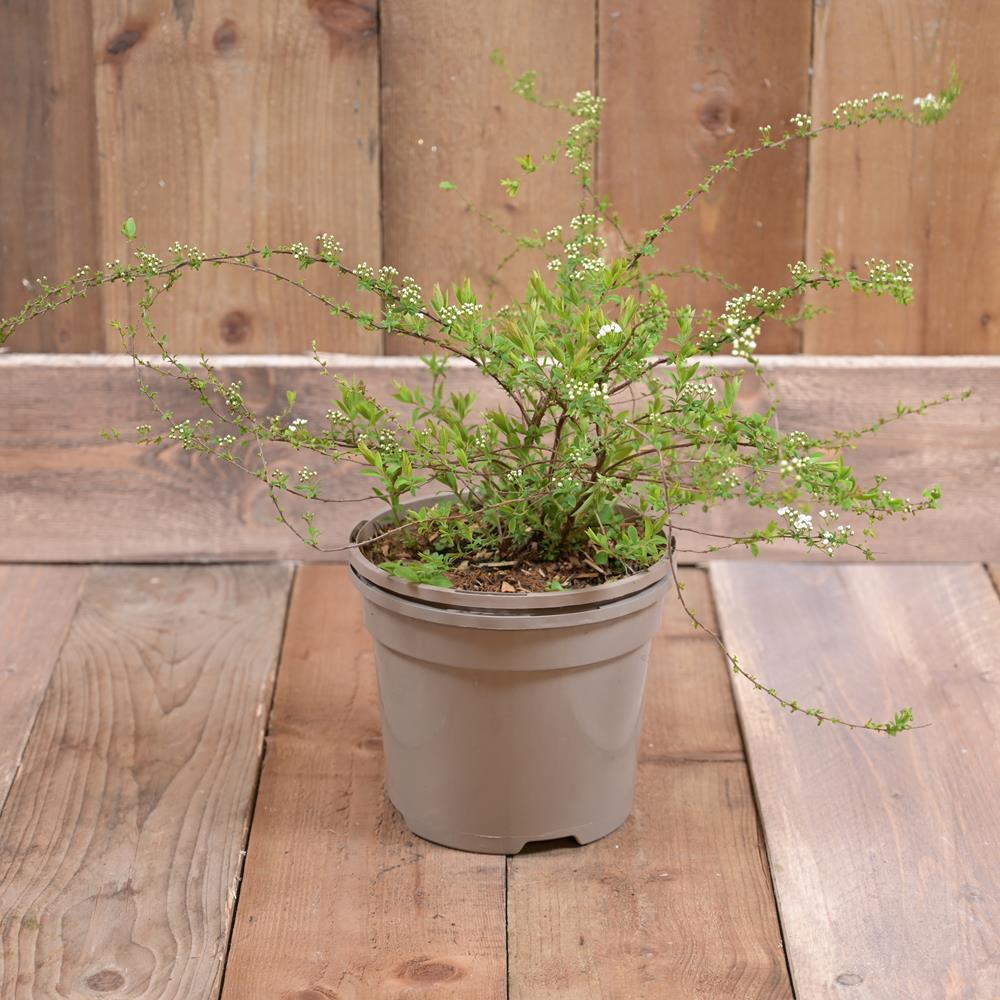 The Bridal Wreath is an attractive spring flowering shrub which has arching stems that are covered in white flowers in early spring. This is followed by fresh green foliage. Best grown in sun or partial shade in a moist yet well drained soil.
