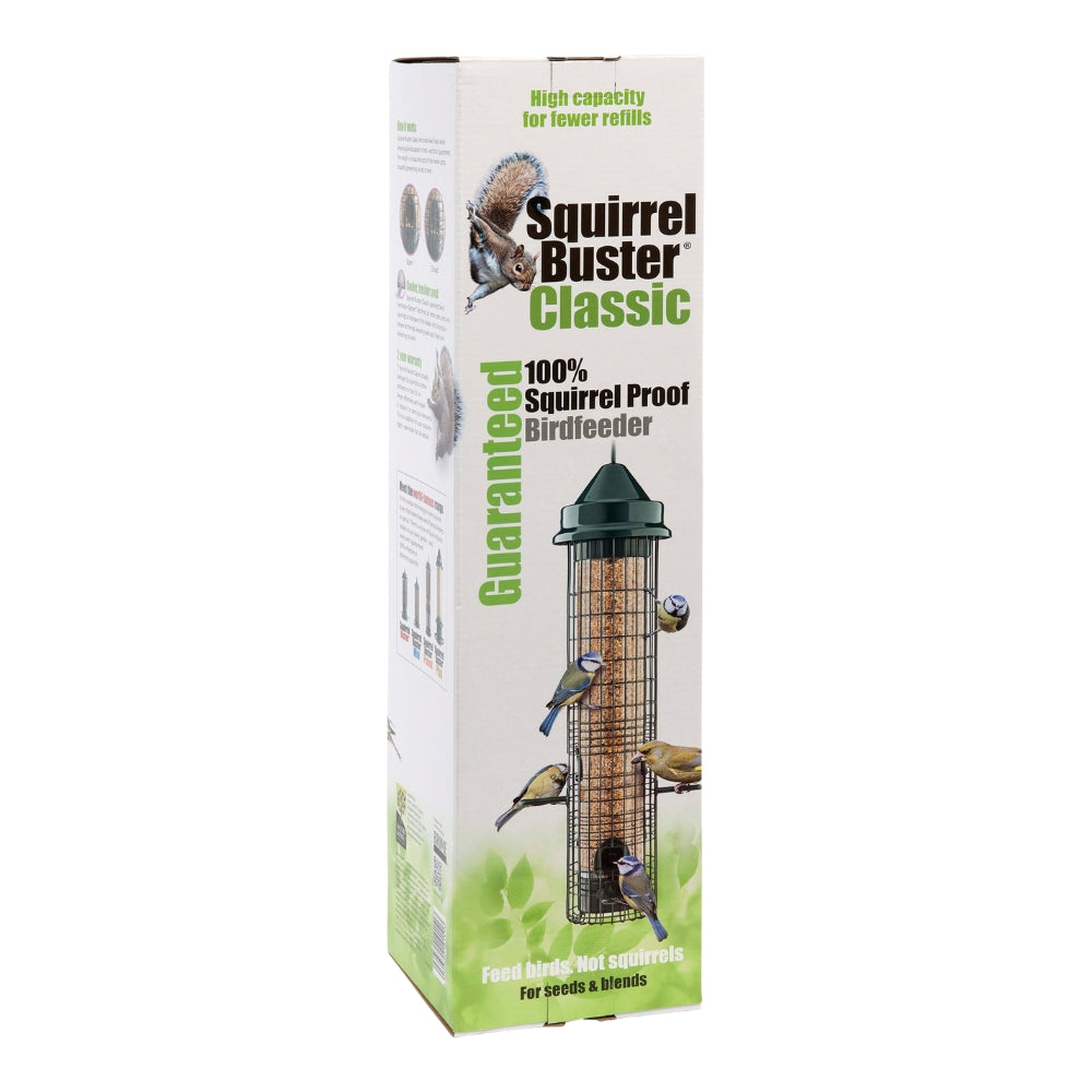 The Squirrel Buster Classic 1.4L is the original feeder that set the standard for squirrel-proof bird feeding. Designed to let birds feed freely while blocking pests, it automatically closes its feeding ports under the weight of a squirrel, keeping seed safe every time. The patented Seed Tube Ventilation System keeps seed fresh by allowing warm air to escape and cool air to circulate. Built to last, it features a Negative Grip Tube to prevent squirrels from hanging and a removable perch system that can convert the feeder into a clinging-only model. Backed by a lifetime guarantee, its a trusted favourite for garden bird lovers.