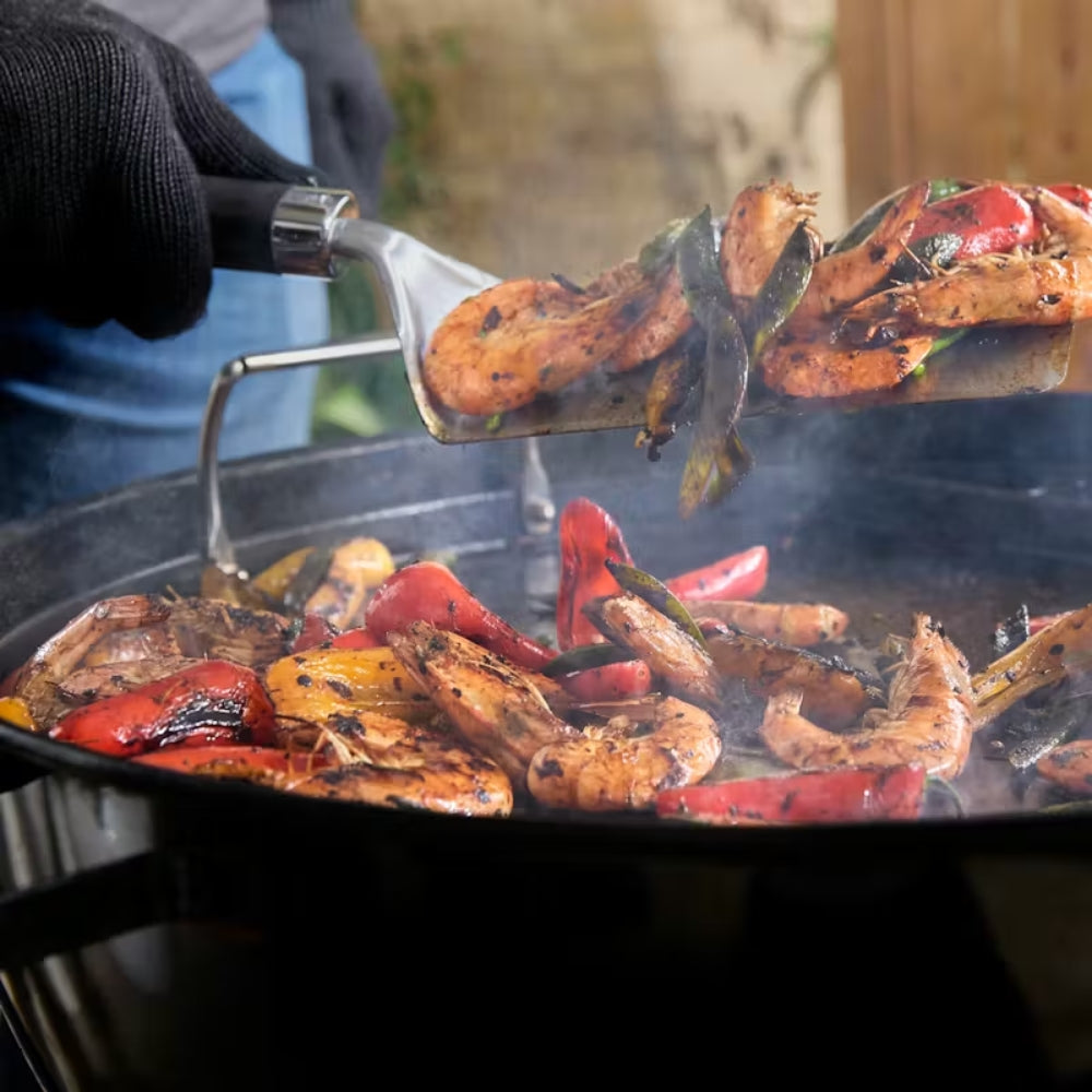 The Weber Porcelain-Enamelled Cast Iron Round Griddle Insert 57cm allows you to completely transform your standard 57cm charcoal kettle into a high-performance, flat-top griddle. This heavy-duty insert covers the entire cooking surface, providing a vast area for sizzling bacon, perfectly seared scallops, or professional-grade smashed burgers. Because it is crafted from premium cast iron, the insert offers exceptional heat retention and perfectly even distribution, which is essential for achieving a consistent sear across every millimetre of the plate. Whether you are cooking a full garden breakfast or a batch of sizzling fajitas, this griddle provides the versatility needed to expand your outdoor menu.